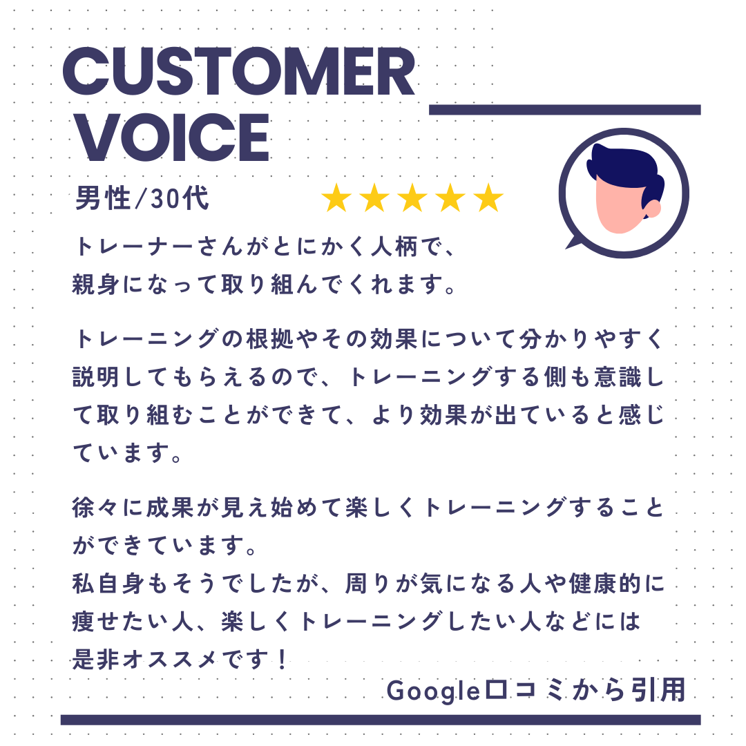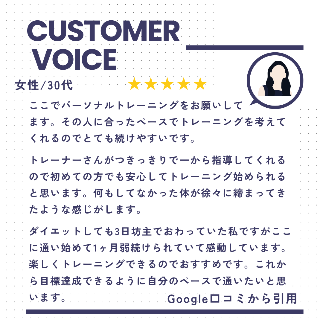 初心者・運動苦手・久しぶりの運動も安心/マンツーマン・完全個室で丁寧サポート